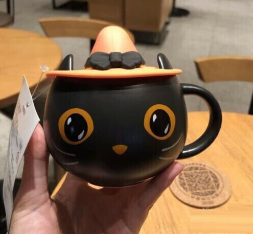 2021 Starbucks Black Cat Cup With Witch Cap Lid&Spoon Water Mug Halloween Gifts