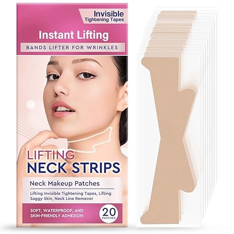 TOMENGBEIAABBCC Neck Strips, Reusable Neck Wrinkle Patches, High Elastic Instant Neck Lift Tape for Lifting Loose Skin, Improve Neck Lines and Wrinkles, 20 Pcs