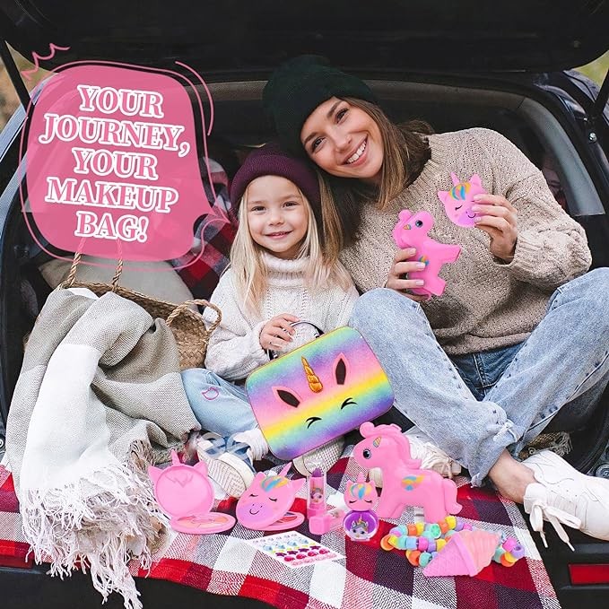 • 【Portable and Travel-Friendly】- The compact and lightweight design of our makeup kit makes it perfect for on-the-go entertainment. Whether it's a family trip or a playdate, your child can easily carry their favorite beauty essentials wherever they go.