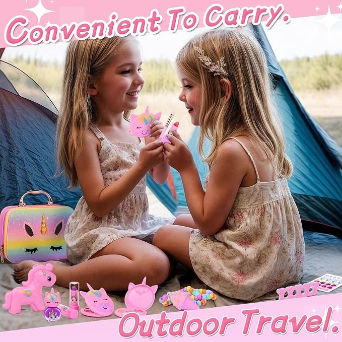 • ?✨?【Perfect for Little Travelers 】– This kid-friendly makeup bundle features a fun built-in mirror and playful compartments to keep all beauty essentials organized. With its lightweight and compact design, it fits neatly into small bags or suitcases, making it an adorable travel pal for every adventure.