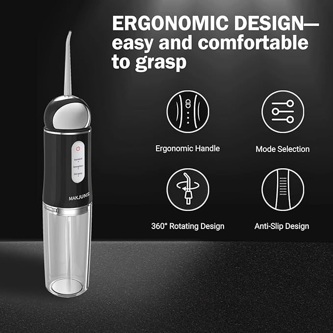• 【3 Modes 4 Jets】MAKJUNS water dental flosser is available in normal, soft and pulse modes. It has 4 interchangeable nozzles to meet the needs of more teeth.