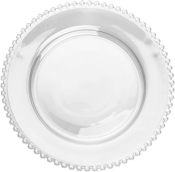 WOLFF - Set of 4 Pearl Beaded Crystal Charger Plates - Hosting Adornment, Dinner Accessories, Decorative Dish, Crystal Kitchen Utensils Set - Luxury Glasswear, Dish Set - Clear, 12.6 inches
