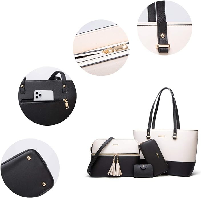 Women Fashion Synthetic Leather Handbags Tote Bag Shoulder Bag Top Handle Satchel Purse Set 4pcs