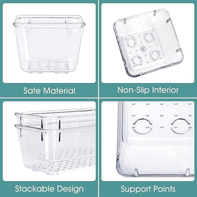 Stackable Design: These clear storage bins stack into one other to help maximize your space. Use them side by side to keep organized. The clear color allows you to save time and find what you need quickly and easily.