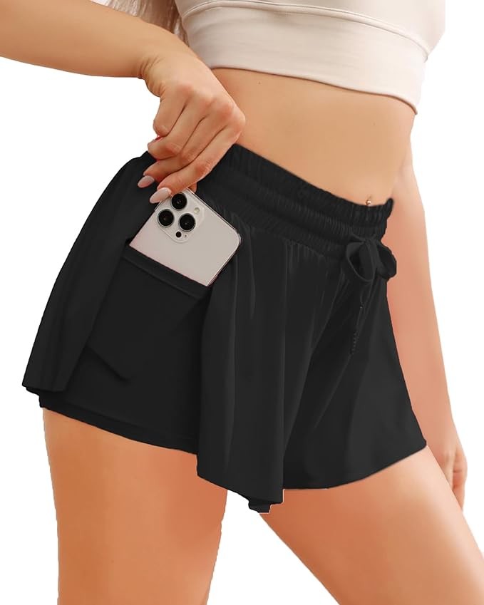 Wsirmet Flowy Shorts for Women Butterfly Shorts 2 in 1 Athletic Workout Gym Biker Running Shorts with Pockets