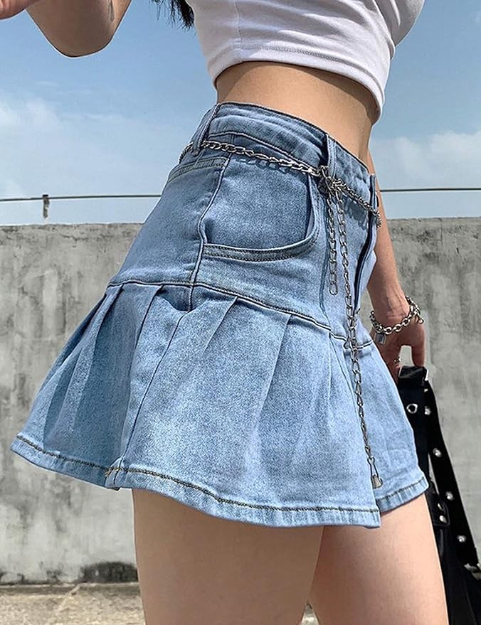 Yeokou Women's Casual Slim A-line Pleated Ruffle Short Mini Denim Skirts