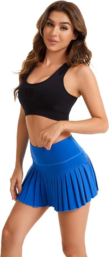 • Women Girls High Waisted Pleated Skater Tennis School A-Line Skirt Uniform Skorts with Lining Shorts, Women's Elastic Waist Pleated Skirt Skater Skort School Uniform Mini Skirts with Lining Shorts and Pockets, Pleated Tennis Skirts for Women with Pockets Shorts Athletic Golf Skorts Activewear Running Workout Sports Yoga Pilates Skirt, Girls Women's Sports Running Pleated Skirt with Comfy Stretchy Band
